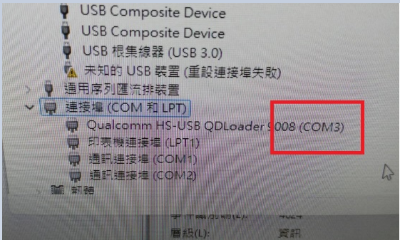 7.You can see QDloader (COMXX) in Device manager(In your laptop or PC)