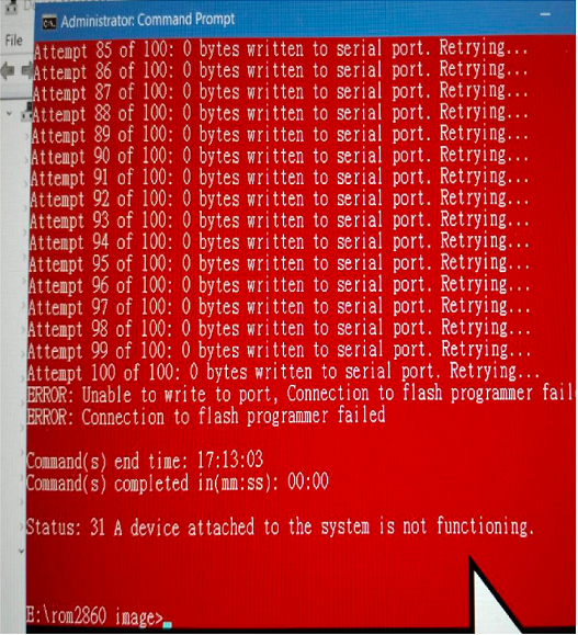 10. If the process fails, it will display the error screen (red screen).