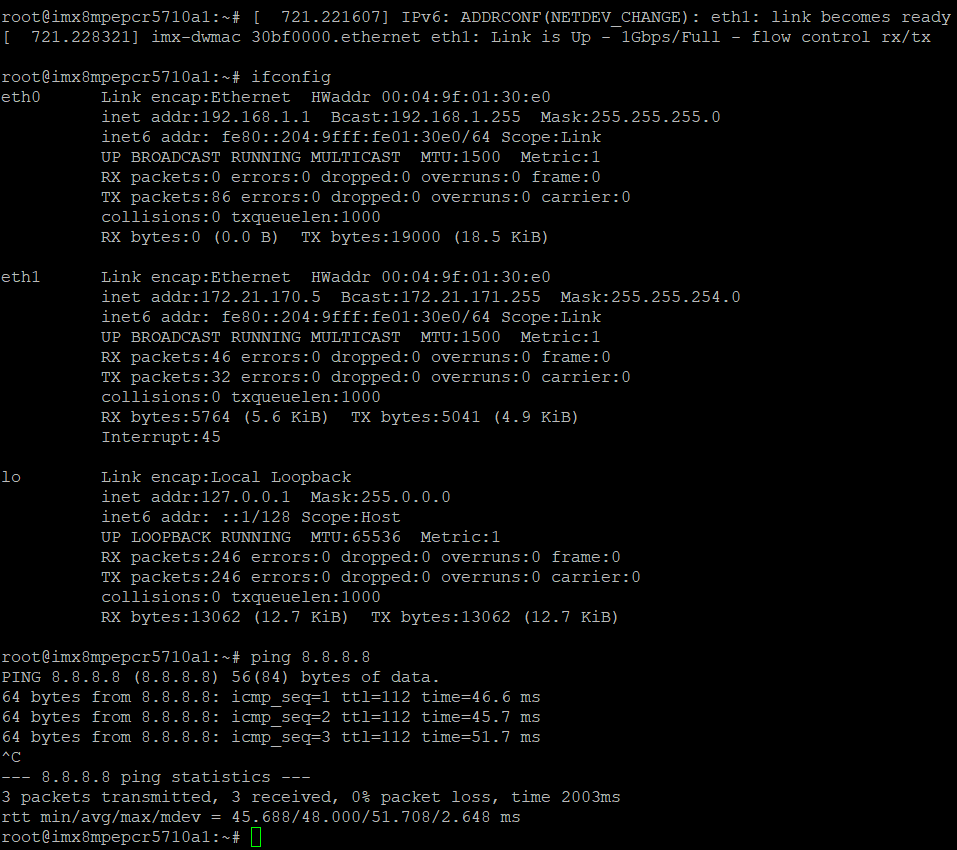 Step 2 : Connect cable and ping test (eg. Eth1)