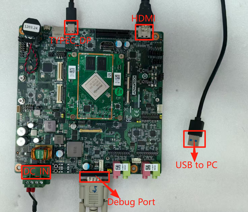 4、Prepare an HDMI monitor and plug the HDMI cable into the HDMI port on the base plate.